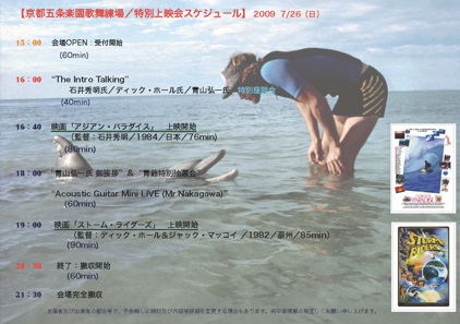 そしてDickさんも世界中を飛び回り、サーフィンの写真と映像を撮り続けてきた。1977年に「チューブラー・スウェルズ」、その後2年を費やし「ストーム・ライダーズ」を制作。アジアン・パラダイスでは撮影監督として、石井さんと一緒にインドネシアを飛び回った。その後もサーフィンの写真と映像を撮り続けている。2002年には英国女王陛下からサーフィン・フィルム貢献賞を受賞している。今回も、ハワイからこのツアーのために来日し、一旦ハワイに戻り、オーストラリアに帰ってからすぐインドネシアに飛んだ。60歳とは思えないくらいフットワークが軽い。