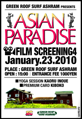 上映会情報 ■2010.1.6 第4回/上映会 開催日決定 [ 予約受付中 ] ■ASIAN PARADISE REUNION INSIDE STORY ■2009.12.7 『 7、Beyond words 』を公開。 [ 詳細 ] UP■NEWS ■2010.1.7 毎週月曜日 ヨガクラスを開催 [ 詳細 ] LINKを2件追加 [ LINK ] ■2010.1.6 GRSA Tシャツ販売開始!! 詳細・購入は→コチラ ■2009.9.28 SC のWEB STOREがリニューアル!! 詳細は→コチラ |